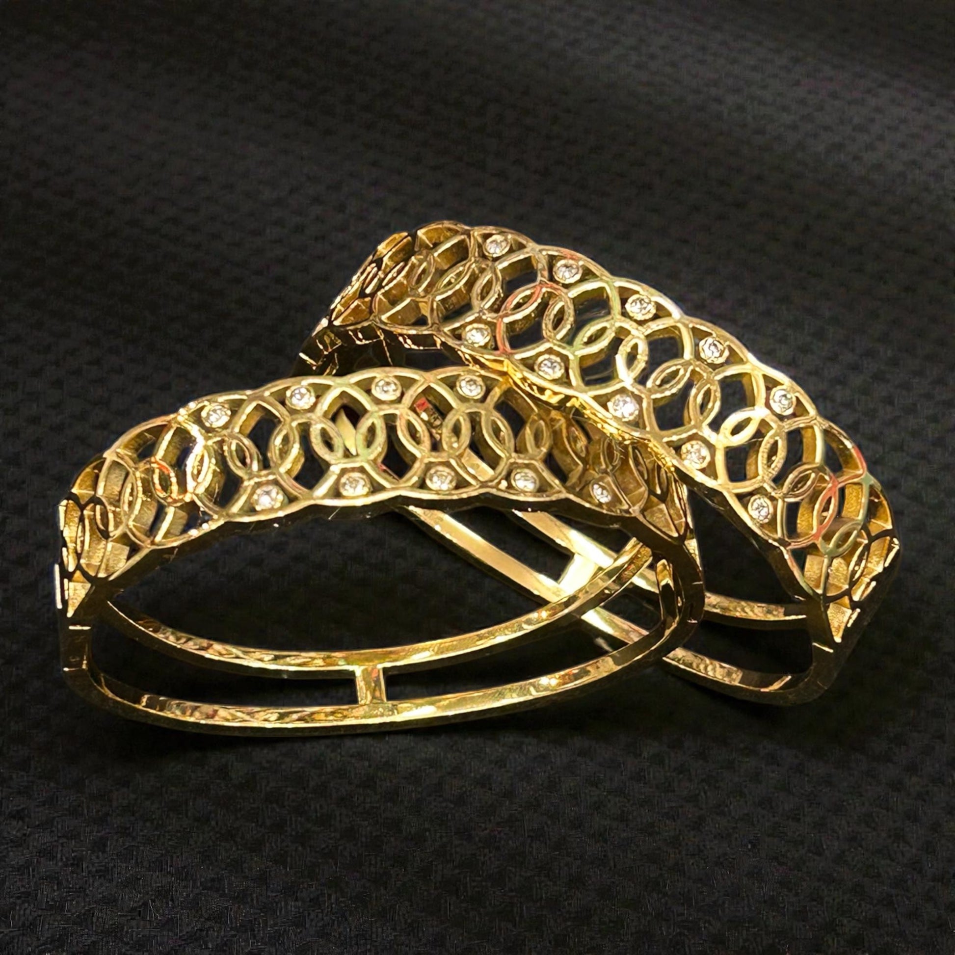Anti-Tarnish Gold-Tone Interlinked Cutwork Kada Bangles with Crystal Accents ( pack of 3)