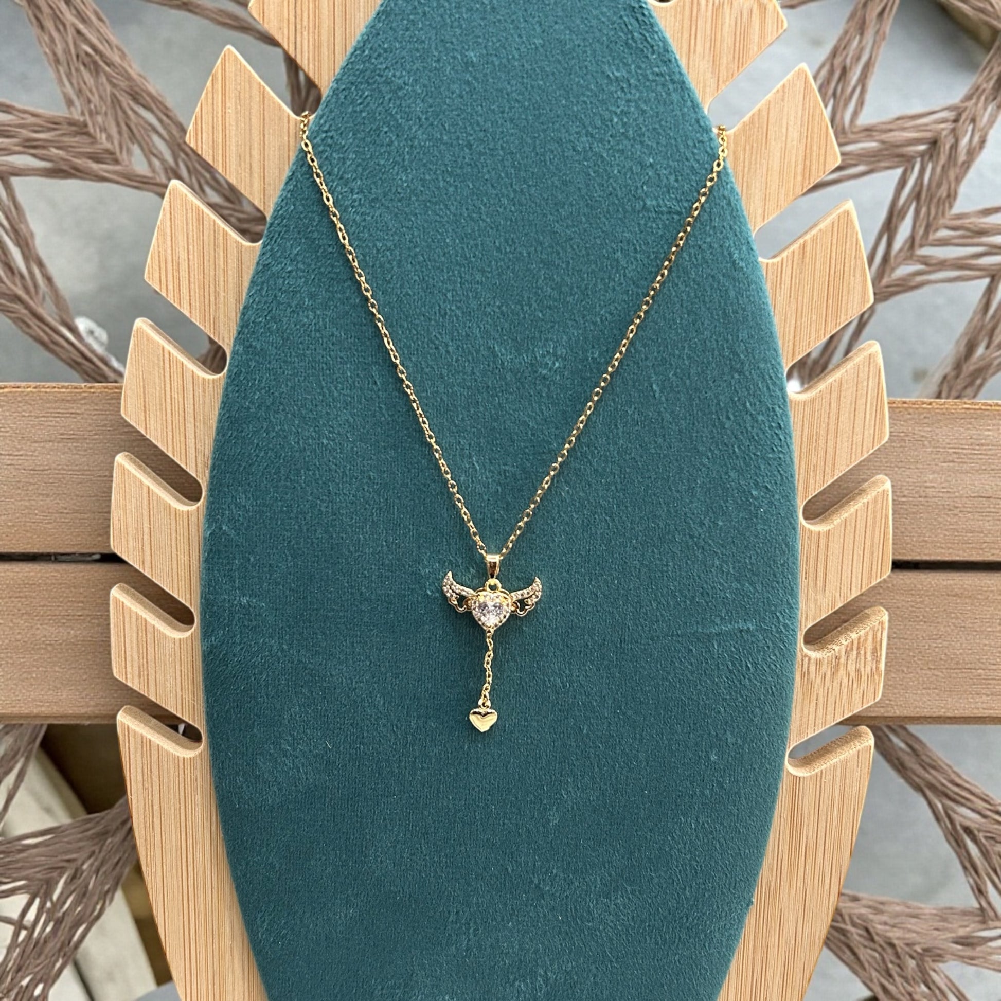 Elevate your style with this elegant Angel Heart Pendant Necklace, crafted with a premium gold-finish chain and a beautifully designed winged heart charm. The crystal-studded heart adds a soft sparkle, while the delicate dangling heart detail enhances its graceful look. Lightweight and comfortable, this necklace is perfect for everyday wear as well as special occasions.