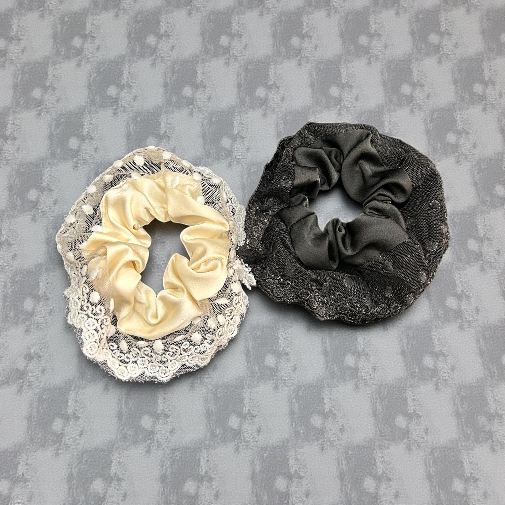 Add a graceful and classy touch to your hairstyle with these lace border satin hair scrunchers. Designed with a smooth satin inner layer and delicate lace outer detailing, these scrunchies give a soft, elegant finish perfect for both daily styling and special occasions.