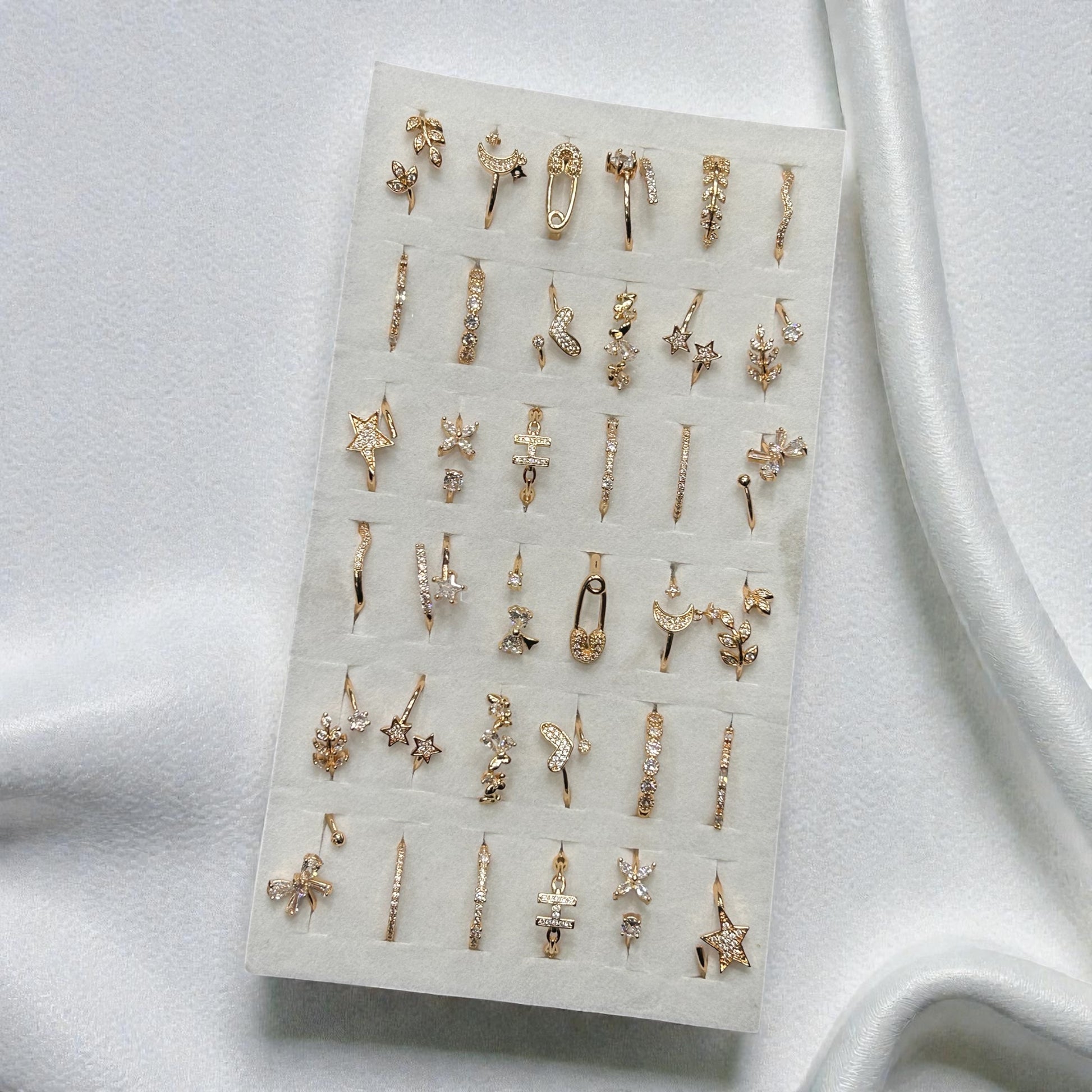 Enhance your jewelry collection with this premium golden tone adjustable ring combo set, featuring a beautiful mix of floral, star, butterfly, and minimalist designs. Each ring is crafted with sparkling crystal accents to add elegance and charm to every look.