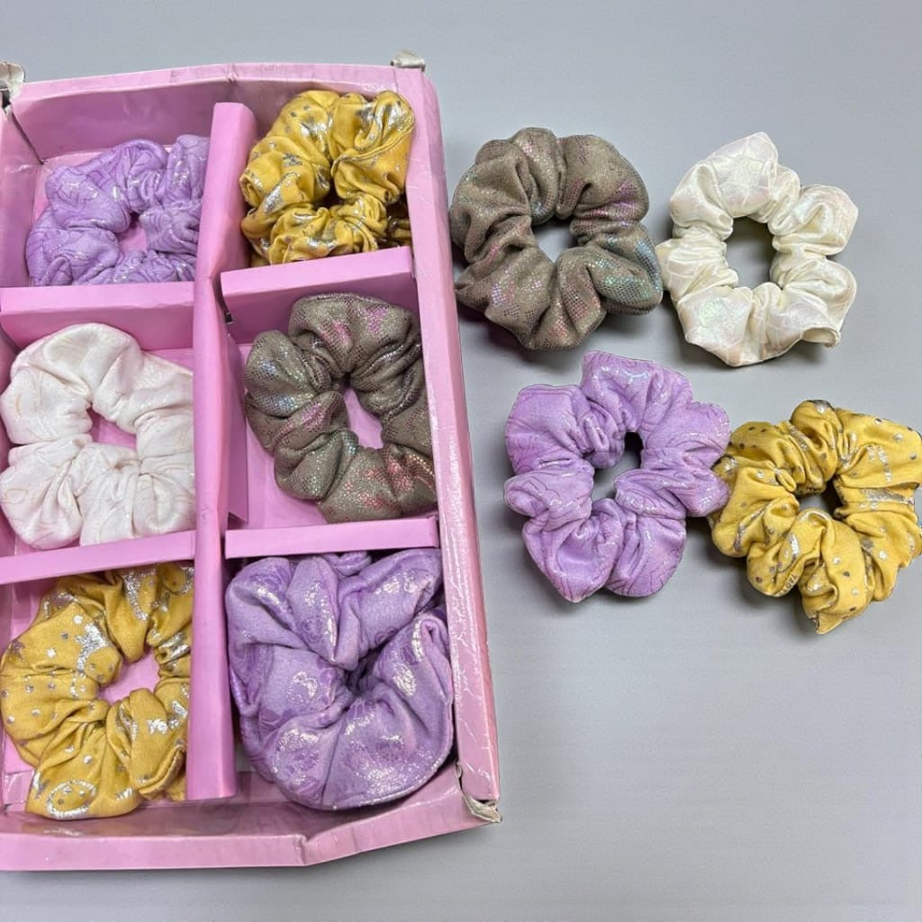 Shimmer Fabric Hair Scruncher Set – Soft Glitter Elastic Ponytail Holder( pack of 12)