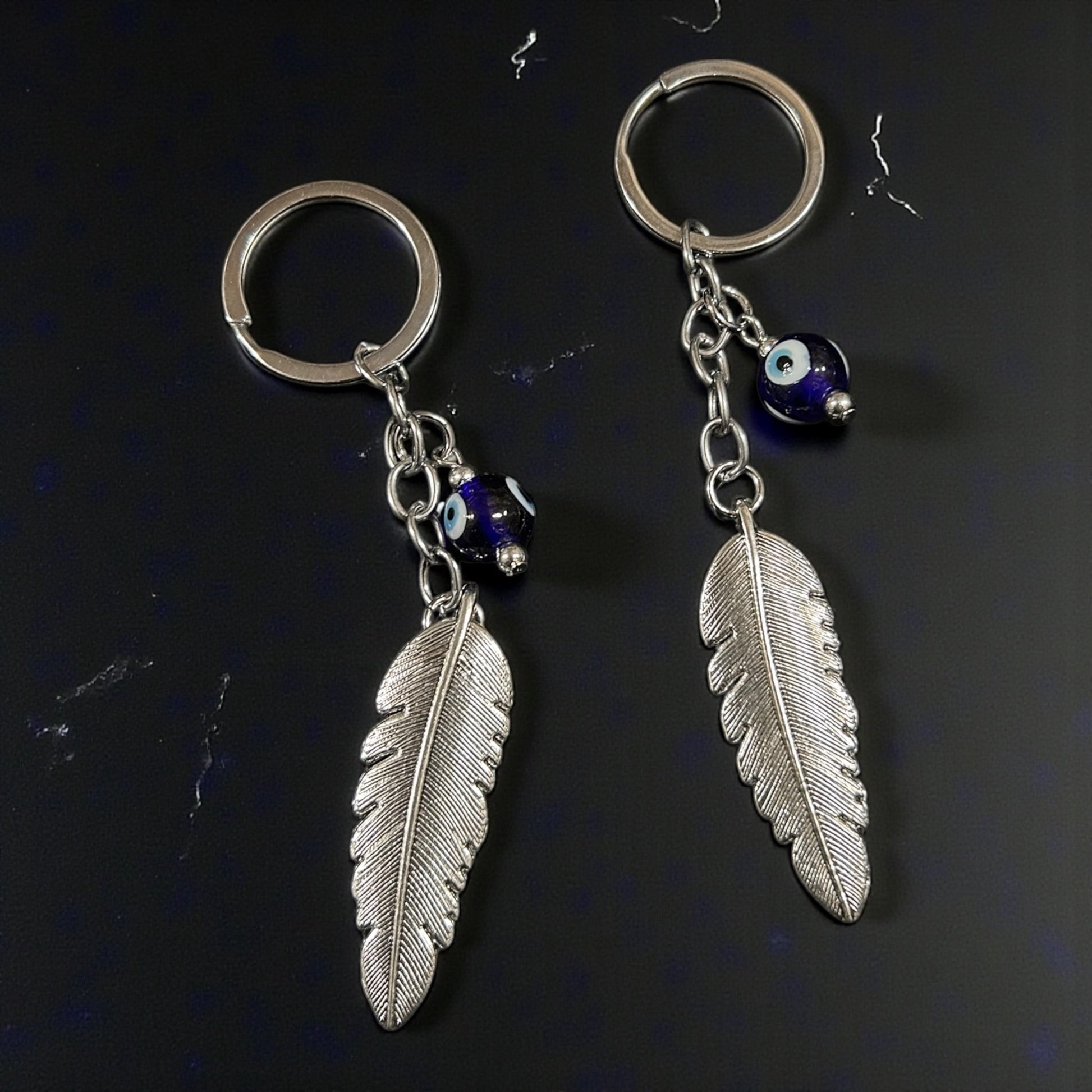 Silver Feather Evil Eye Keychain – Minimal Nazar Protective Charm Key Ring( pack of 12)