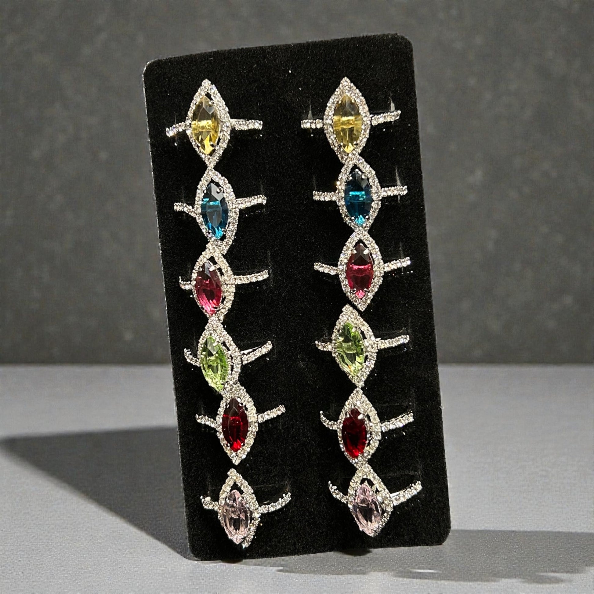 Silver Plated Multicolor Marquise CZ Adjustable Rings Set – Anti-Tarnish Elegant Collection ( pack of 12)